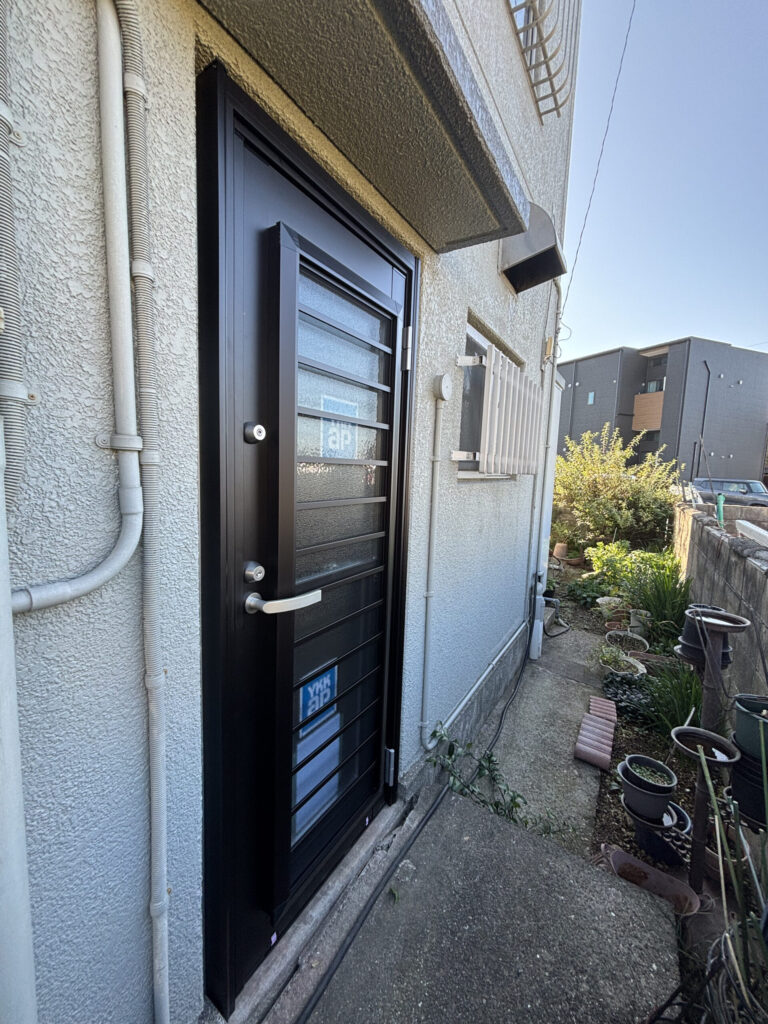 どちらもカームブラックを選ばれ、重厚感がある出入口となりました。