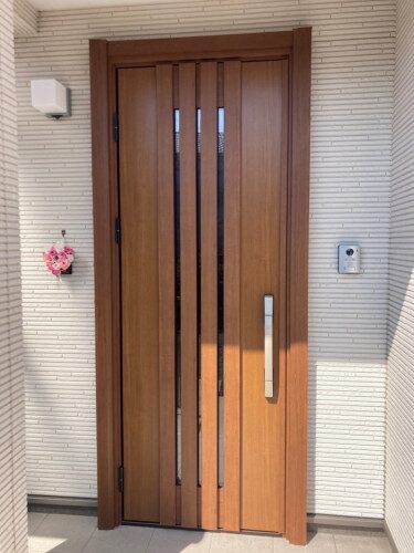 選ばれたドアは木目の落ち着いた雰囲気で外壁ともすごく合っていて素敵です。